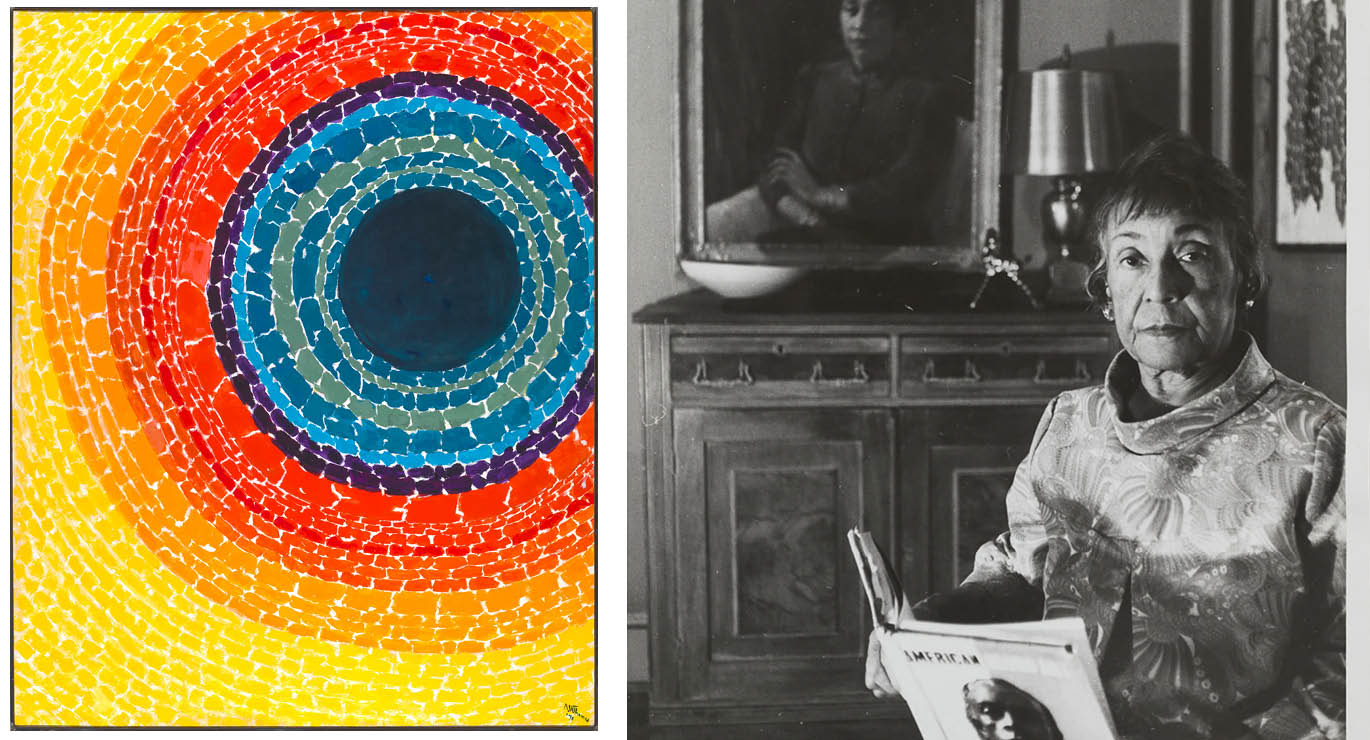 Science and technological advancement served as Thomas’ inspiration for pieces like Aquatic Gardens (1973, SAAM) and Snoopy - Early Sun Display on Earth. Through her use of bright mosaics, she highlighted the joys and wonders of nature.